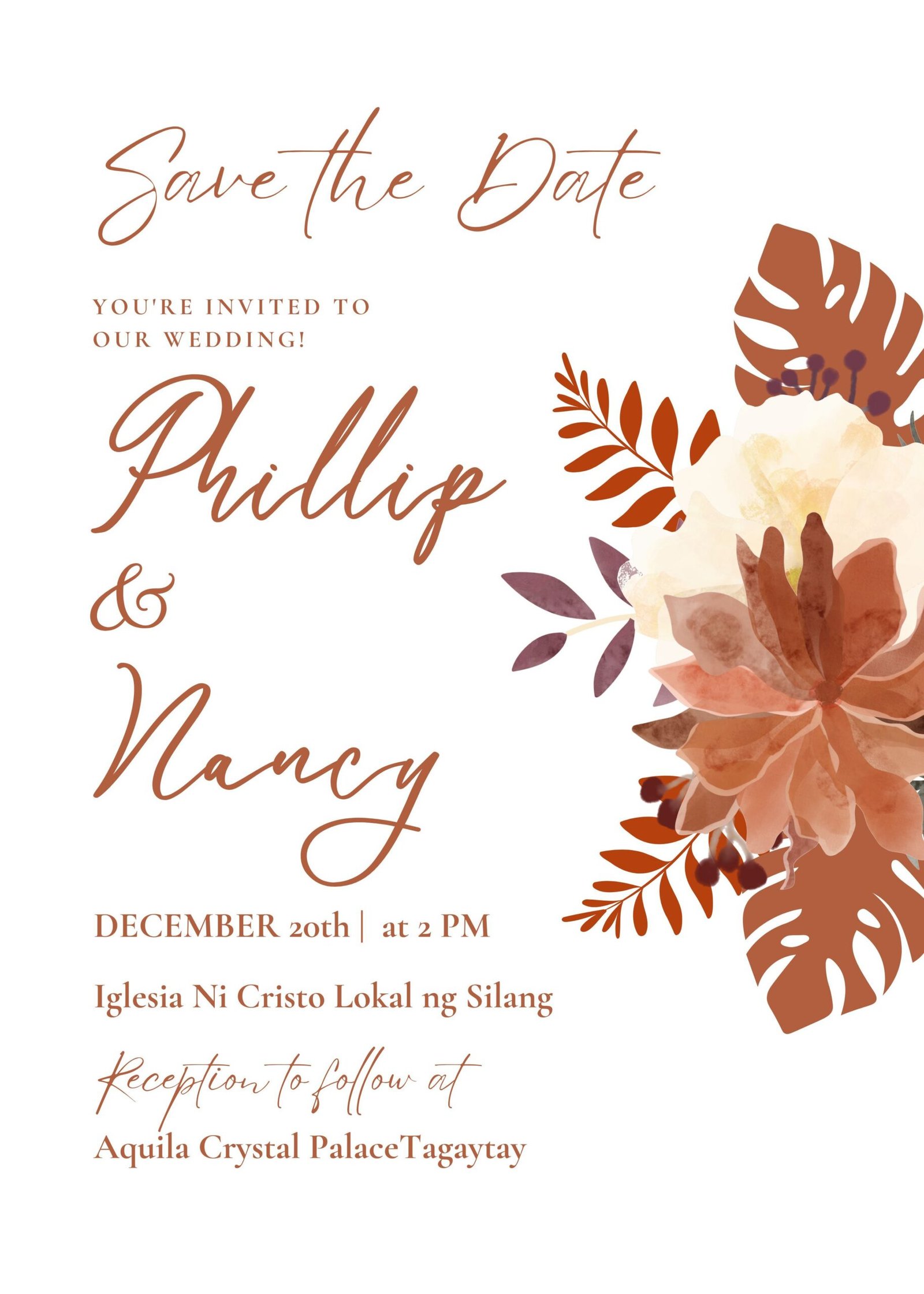 With soft terracotta hues, organic floral elements, and elegant handwritten typography, this invitation suite is perfect for rustic, outdoor, garden, and intimate weddings.