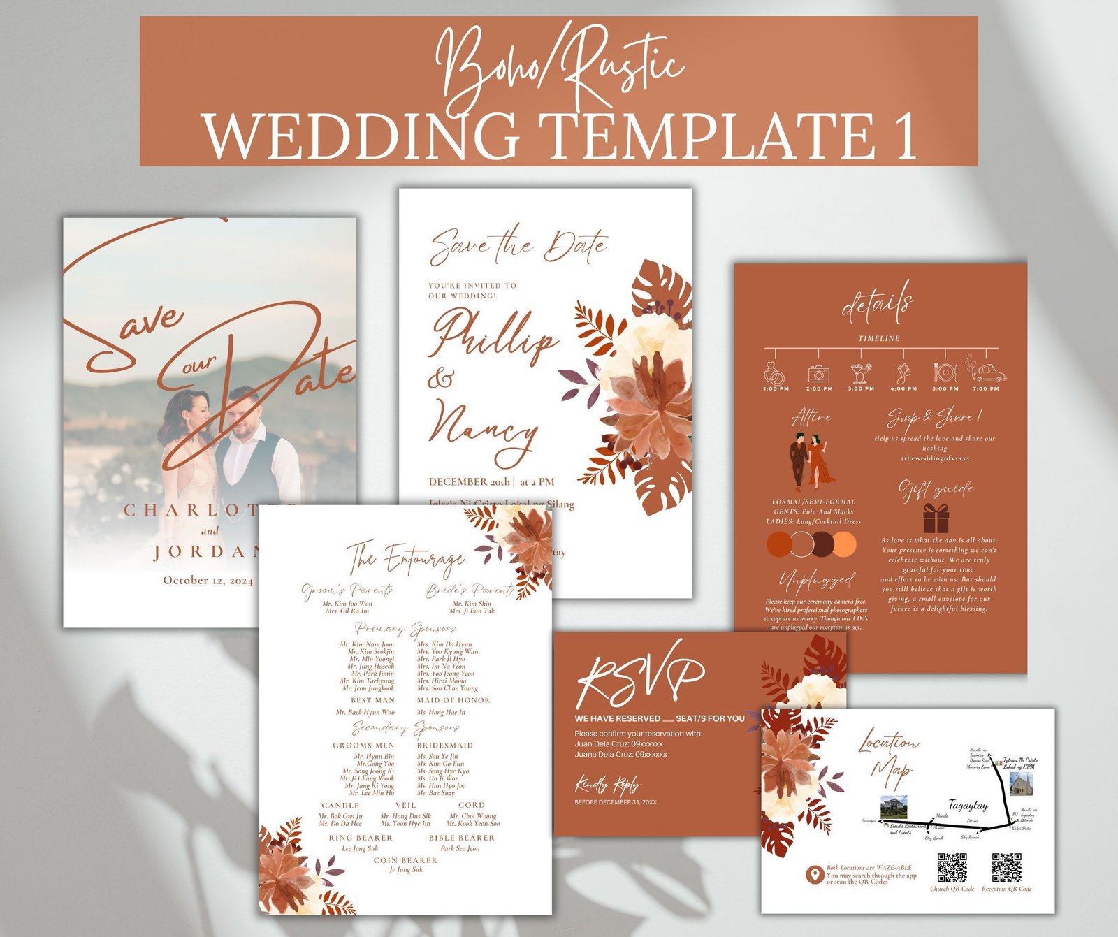 Editable Canva Wedding Invitation | Bohemian & Rustic Style