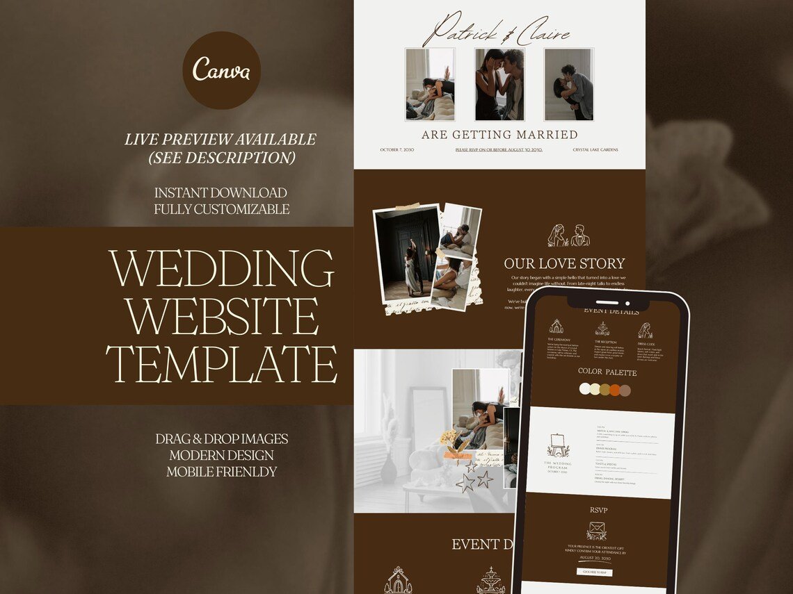 Editable Canva Wedding Website | Digital Invitation, RSVP & Save the Date