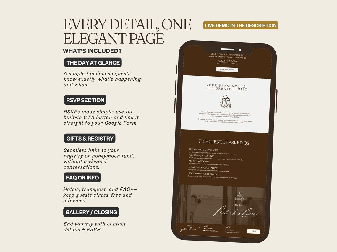 Click me to view the demo wedding website.