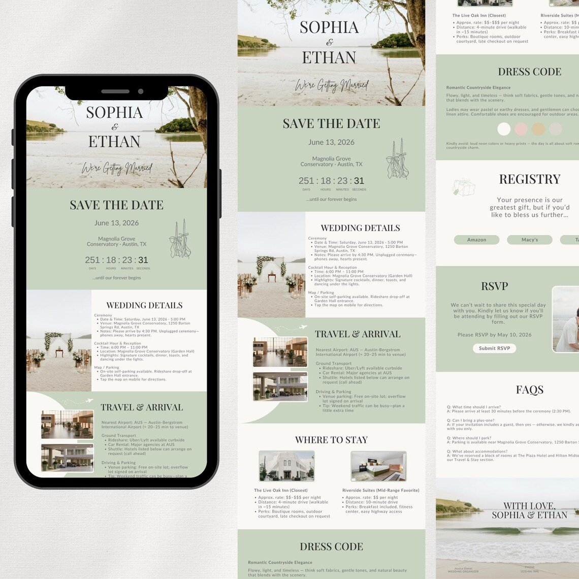 Sage Green Wedding Website (Canva Editable)