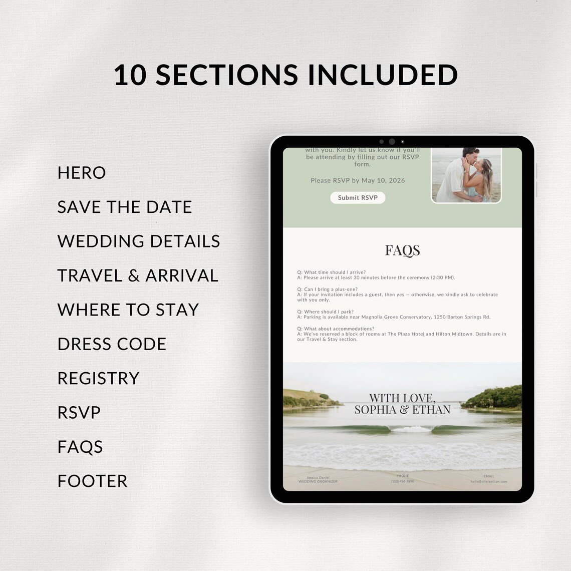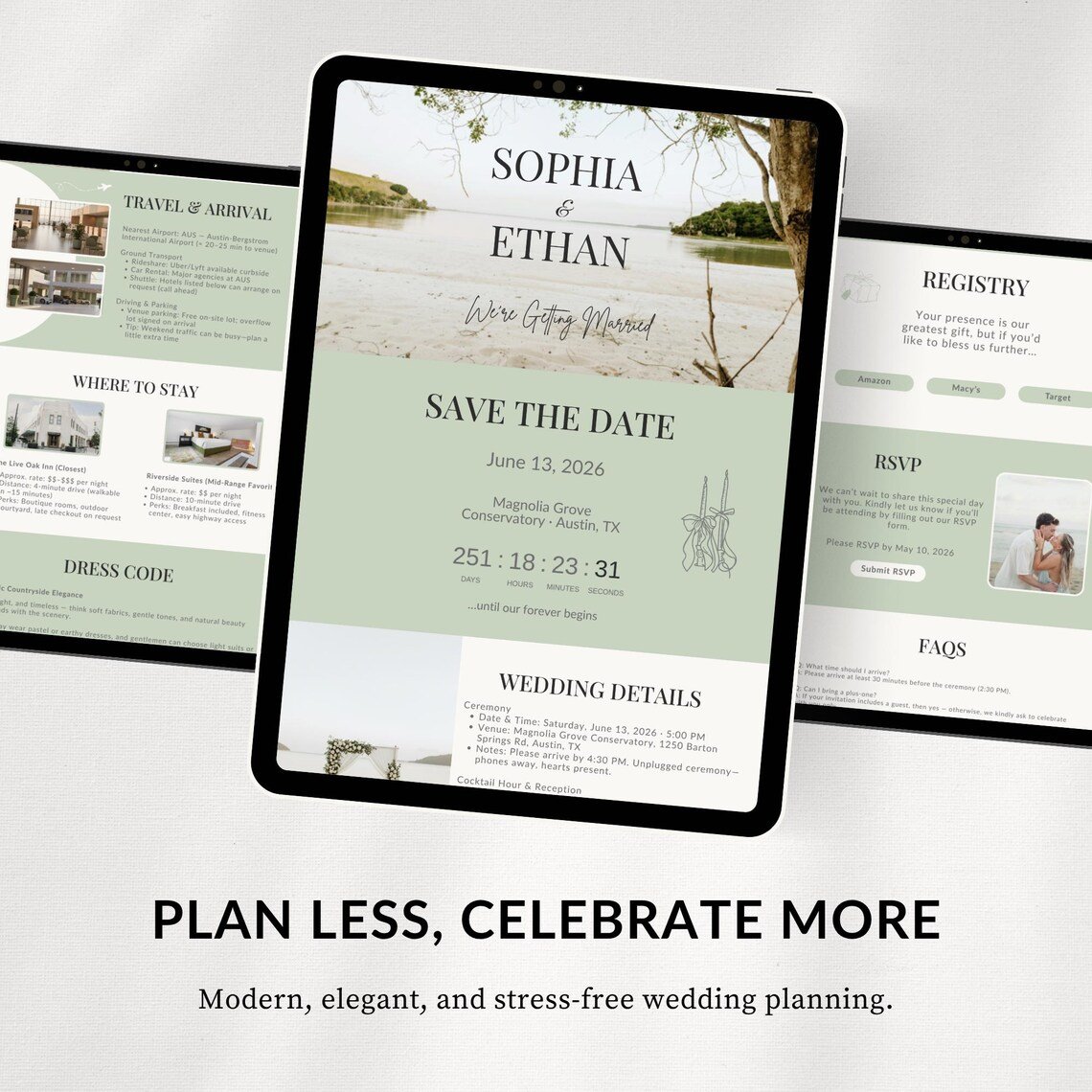 Create a beautiful and organized wedding website with the Sage Green Wedding Website Template, designed for couples who want a modern, elegant, and stress-free way to share their wedding details online.